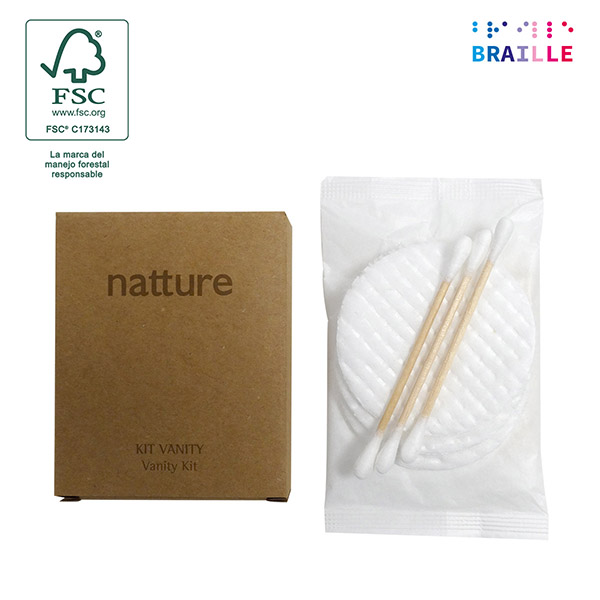 VANITY KIT 3 PADS+3 COTTON BUDS BOX FSC BR NATTURE